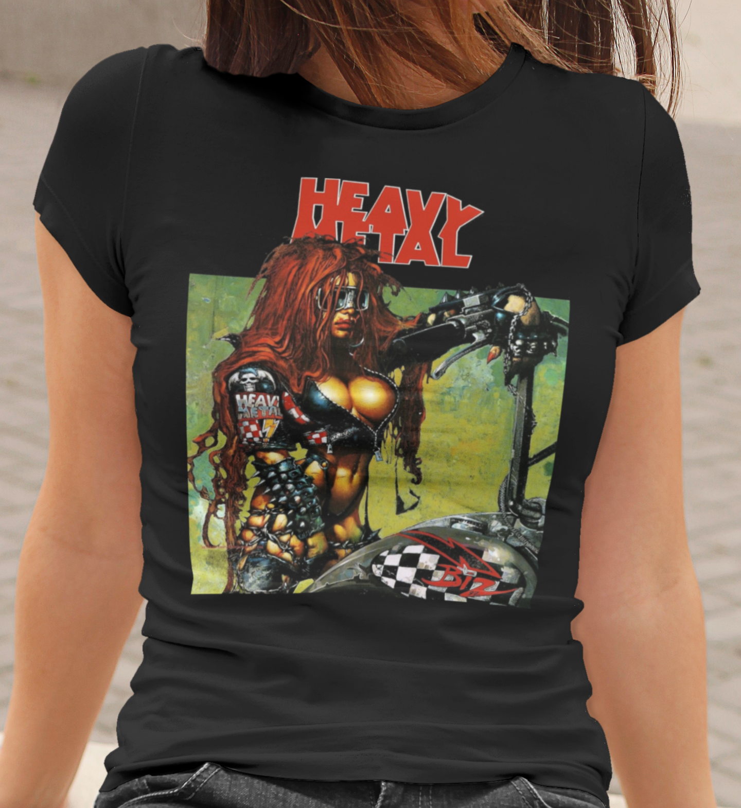 Heavy Metal Biker Babe Graphic T-Shirt 80s Fantasy Sci-Fi Magazine Art Tee RetroPunkDesign