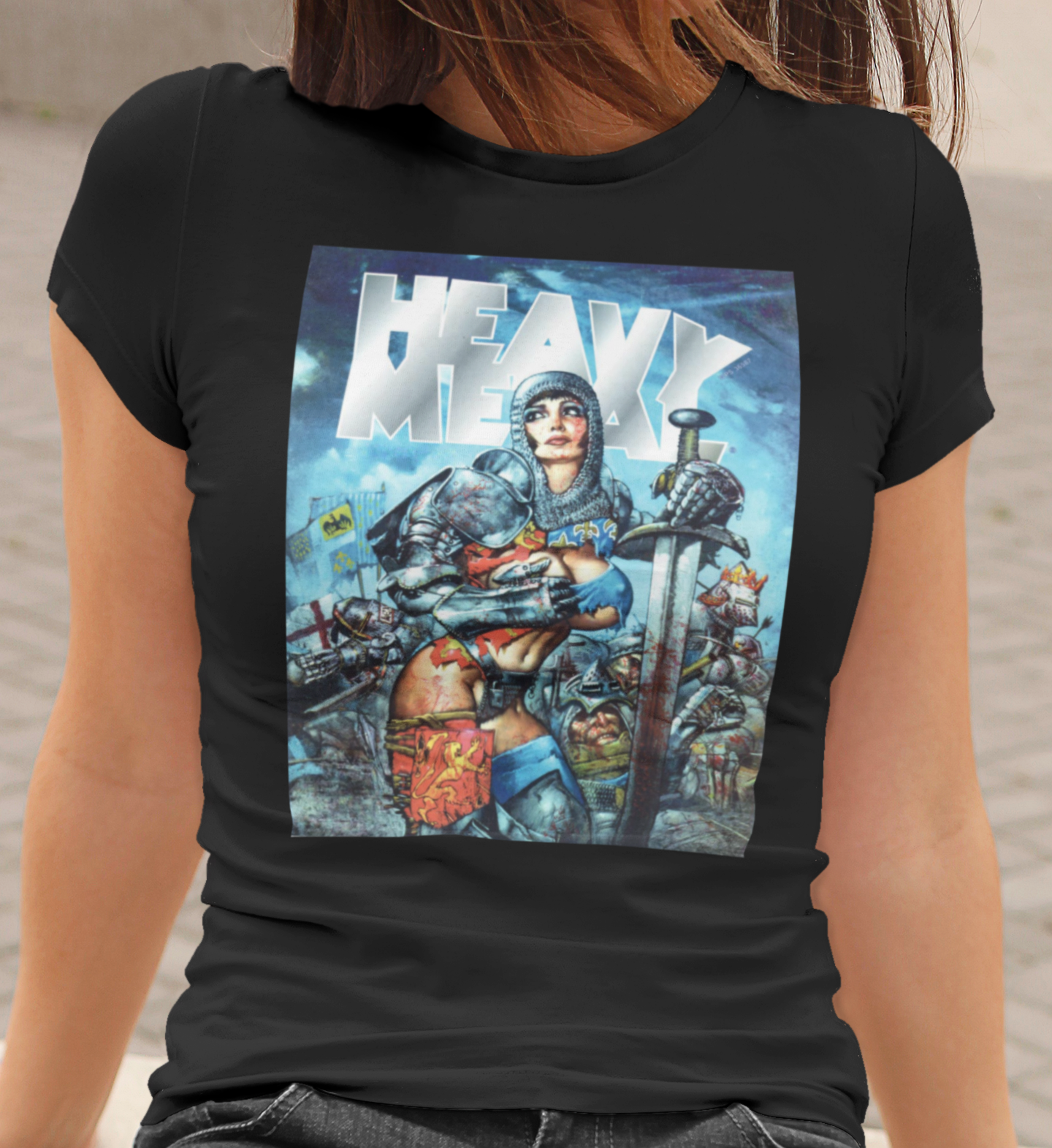 Heavy Metal Knight Babe Fantasy Art Graphic Tee Retro Warrior Comic Shirt