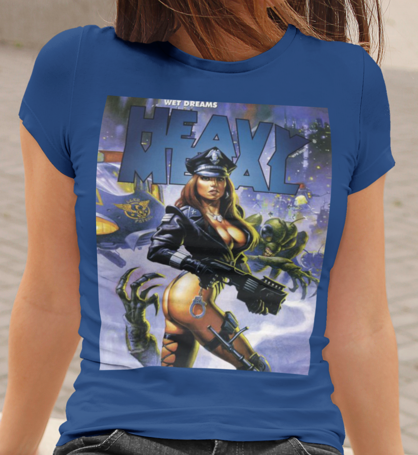 Heavy Metal Police Babe Graphic T-Shirt 80s Sci-Fi Fantasy Magazine Art Tee RetroPunkDesign