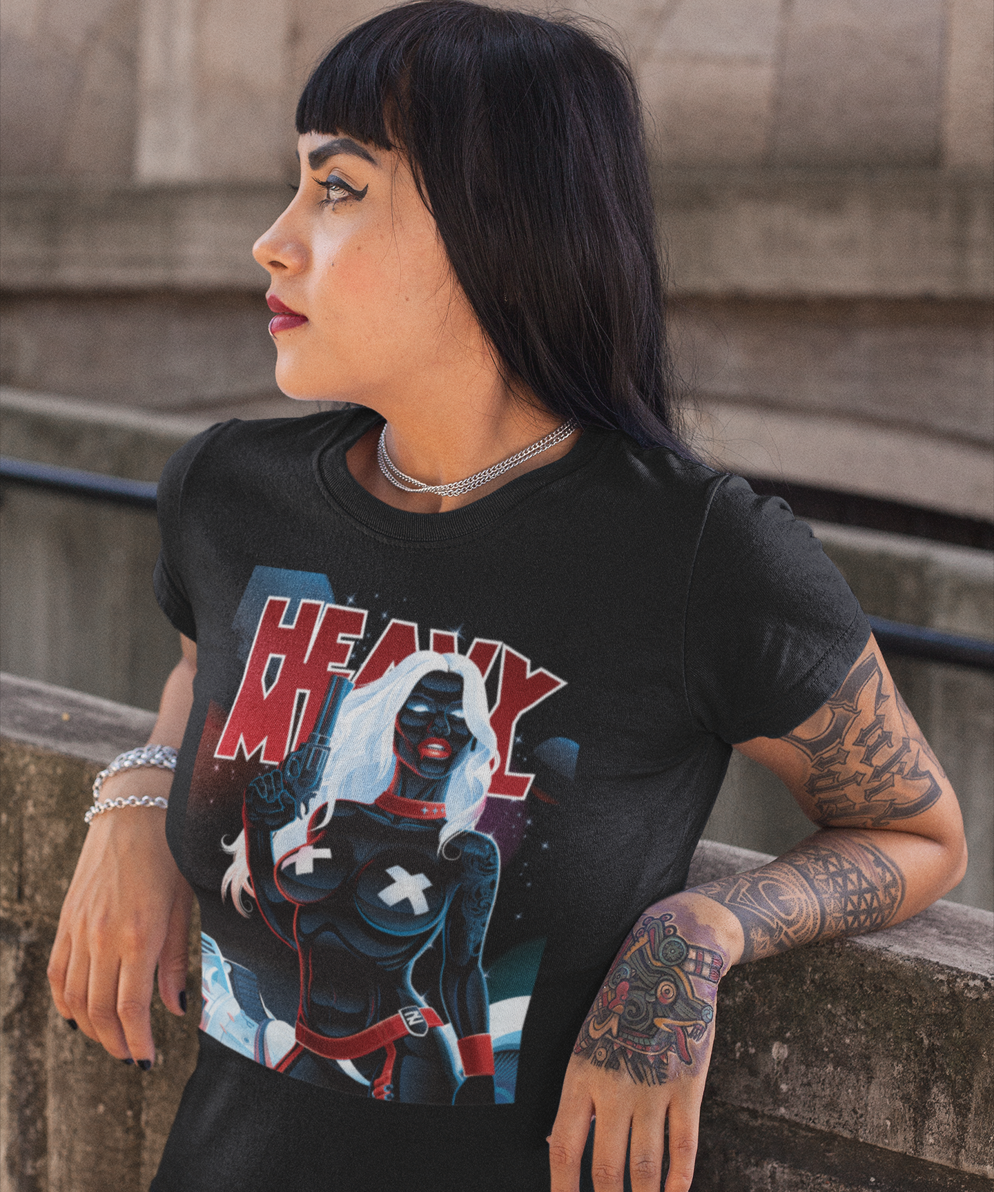 Heavy Metal Space Babe Graphic T-Shirt 80s Sci-Fi Fantasy Magazine Art Tee RetroPunkDesign